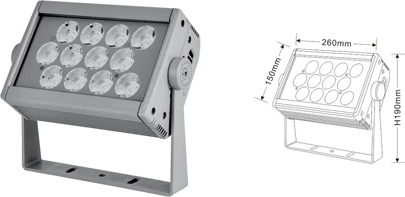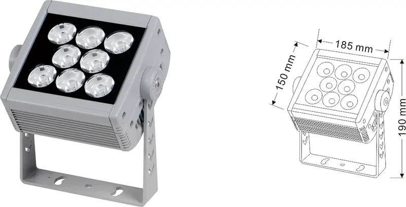 | ایل ای ڈی ایریا لائٹ | KONS-TGD04-1 | 185*150*H190 | 8*3W | مواد: ایلومینیم+غص .ہ گلاس بریکٹ کی قسم: سایڈست IP: IP67 رنگین درجہ حرارت اختیاری: 3000K/4000K/6500K آر جی بی / ڈی ایم ایکس 512 RGBW / DMX512 روایتی گرے ، عمارت کے اگواڑے کے رنگ سے ملنے کے لئے حسب ضرورت |