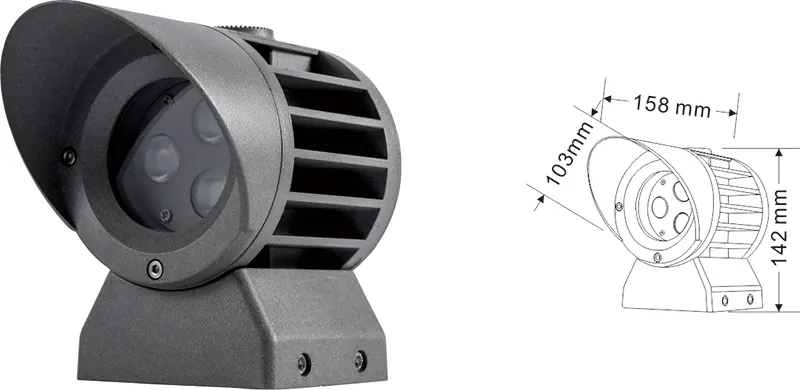 | ایل ای ڈی اگواڑے پروجیکشن لائٹ | CON-TGD02-1 | φ103*89*H152 ملی میٹر | 3-10W | مواد: ایلومینیم+غص .ہ گلاس بریکٹ کی قسم: سایڈست IP: IP67 رنگین درجہ حرارت اختیاری: 3000K/4000K/6500K آر جی بی / ڈی ایم ایکس 512 RGBW / DMX512 روایتی گرے ، عمارت کے اگواڑے کے رنگ سے ملنے کے لئے حسب ضرورت |